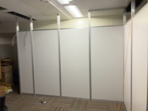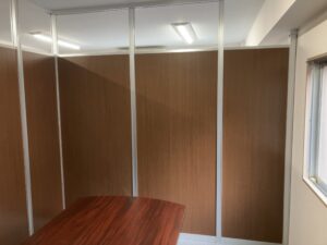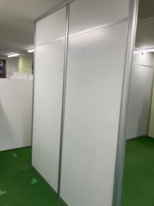 お客様のご要望で、予算内で何とか設置したいと、相談を受けました、ここで諦める訳にはいかない、中古アルミパーテーションでご提案し工事日も空きが比較的多い平日で特価ご提案させていただきました。