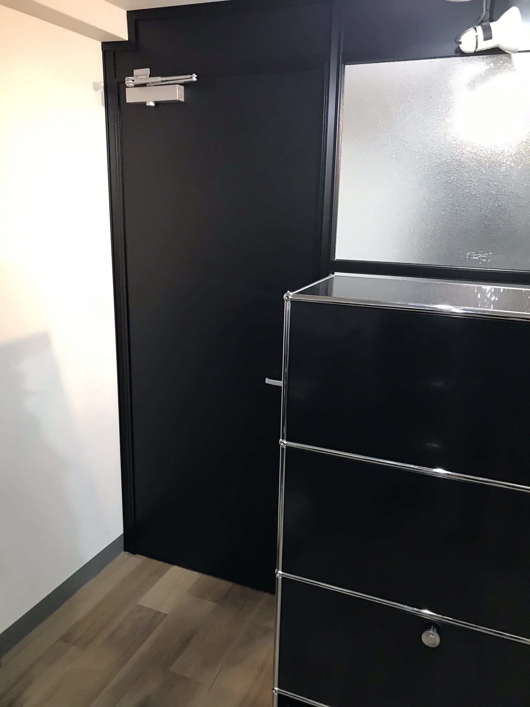 カッコイイとの依頼。ブラック型材アルミとガラスの組み合わせ!
