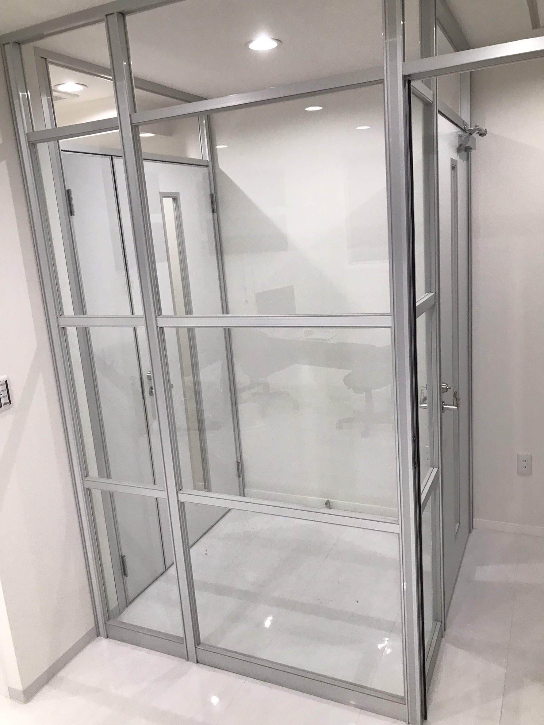 新品アルミパーテーション3段ブロック、自社施工で納期短縮。