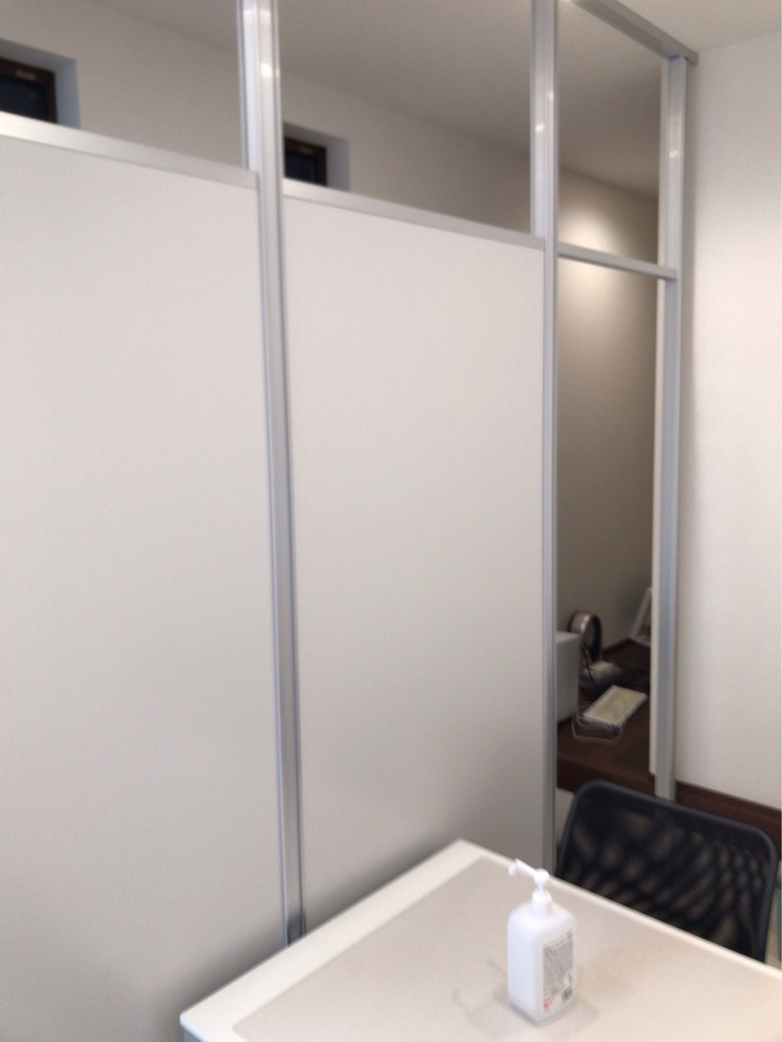 自社施工で納期短縮、新品アルミパーテーションで価格も抑えた。