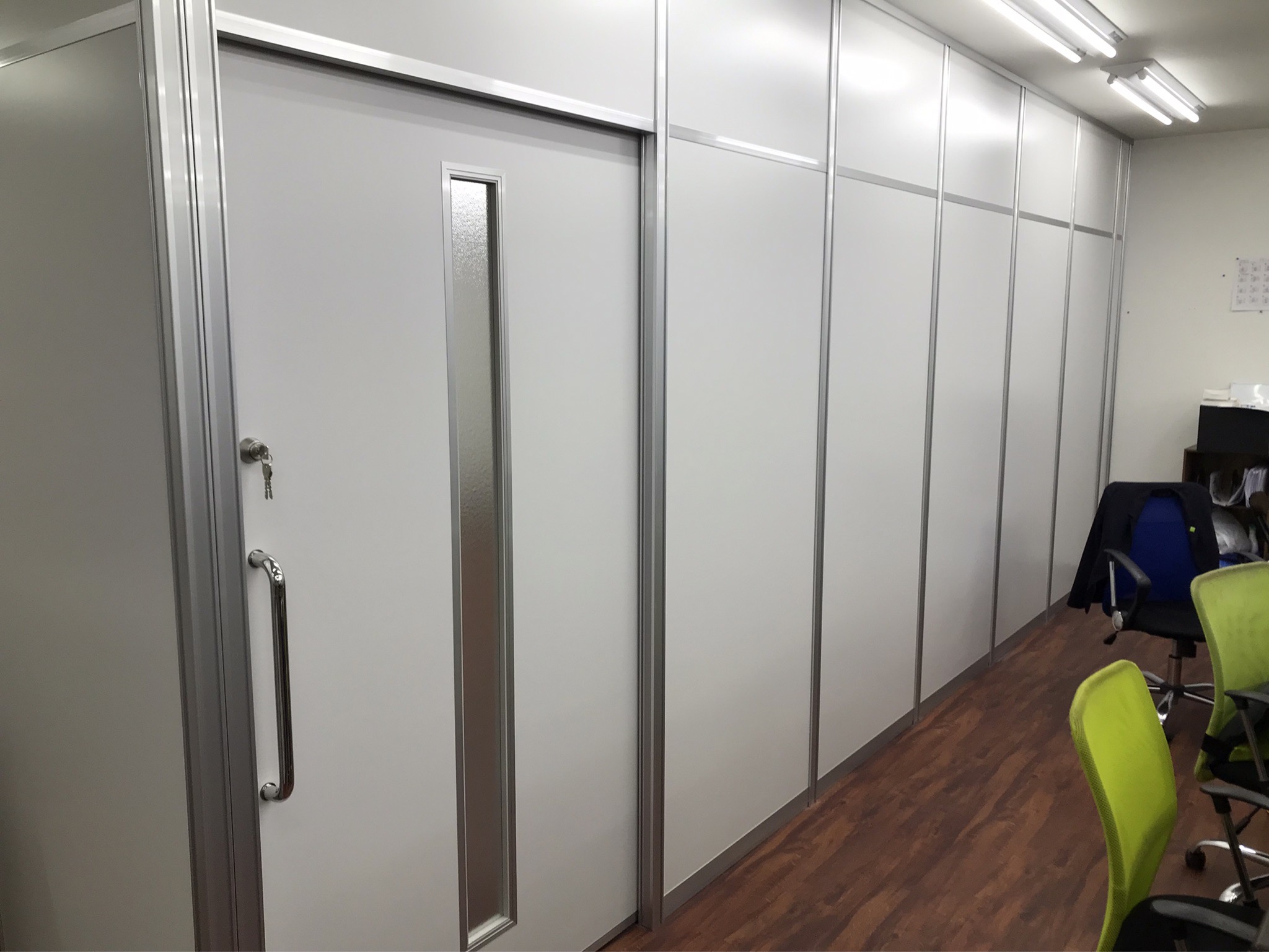 新品アルミパーテーションでお客様の希望価格に抑えた。