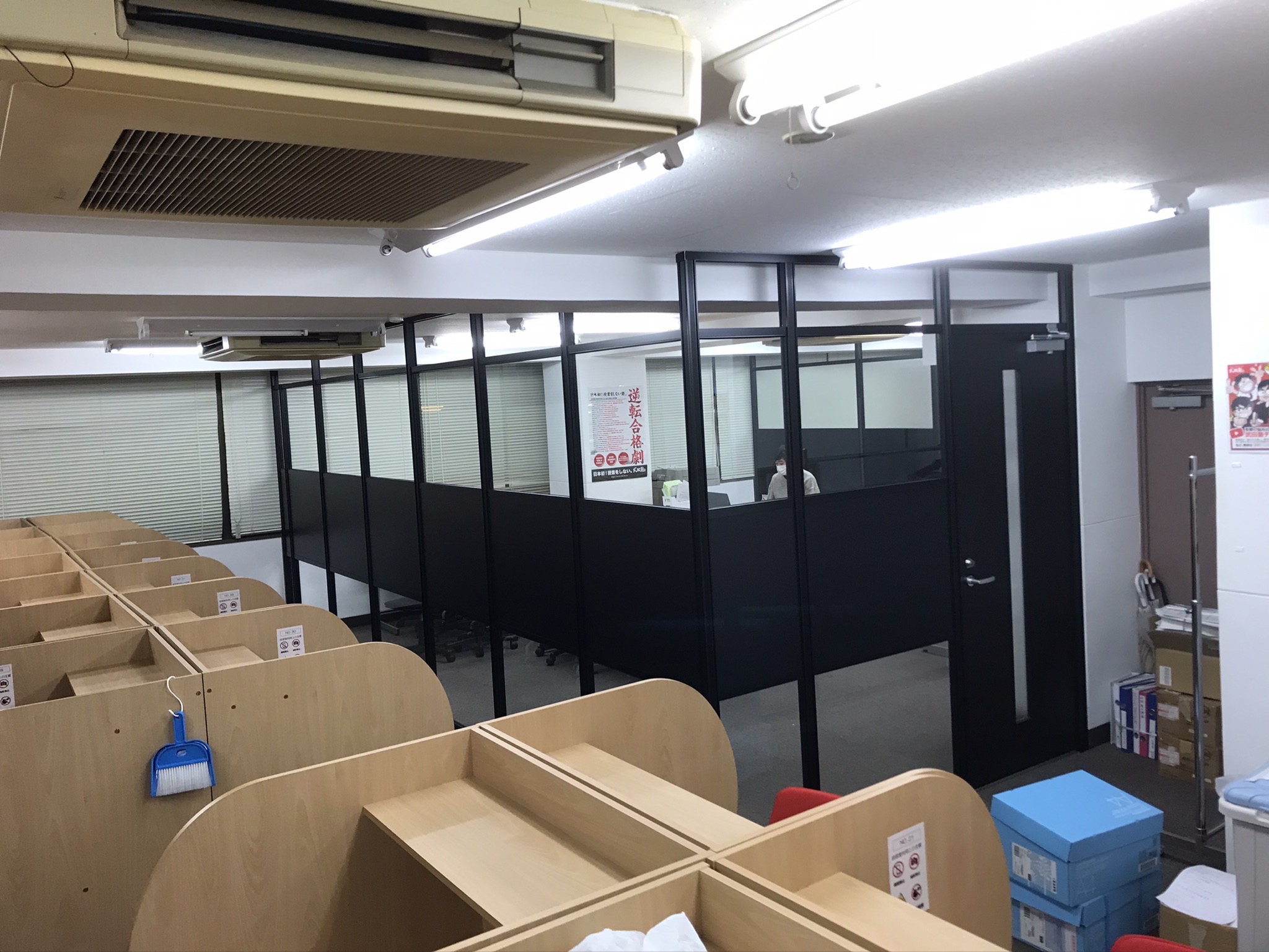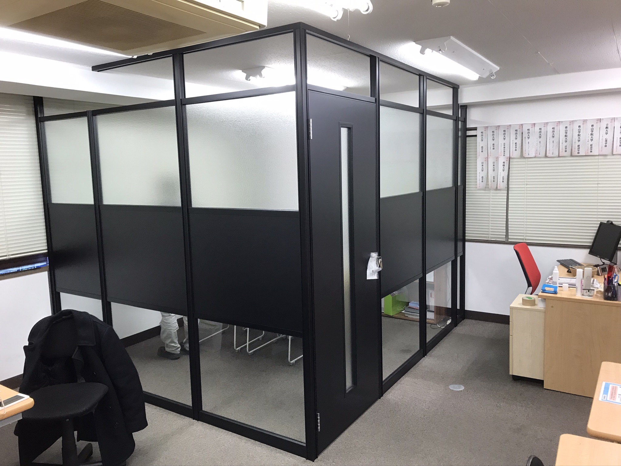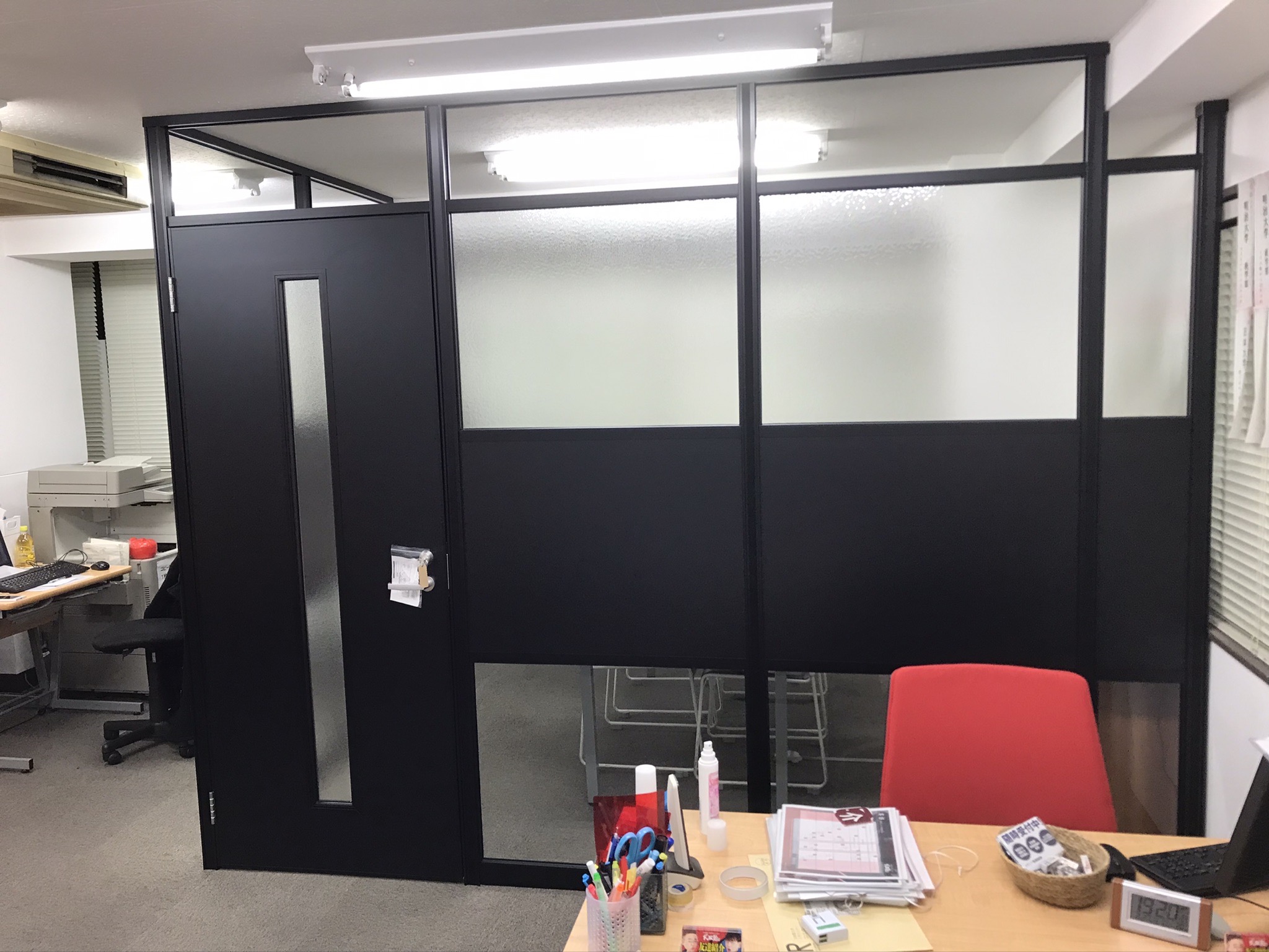新品アルミパーテーションでブラック型材でデザインもバッチリ決めました。