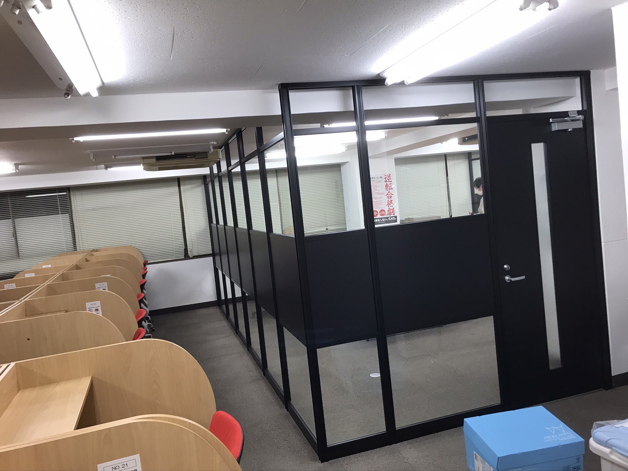 価格はアルミパーテーションで抑え、デザインはブラック型材とガラスを使用して完璧です。