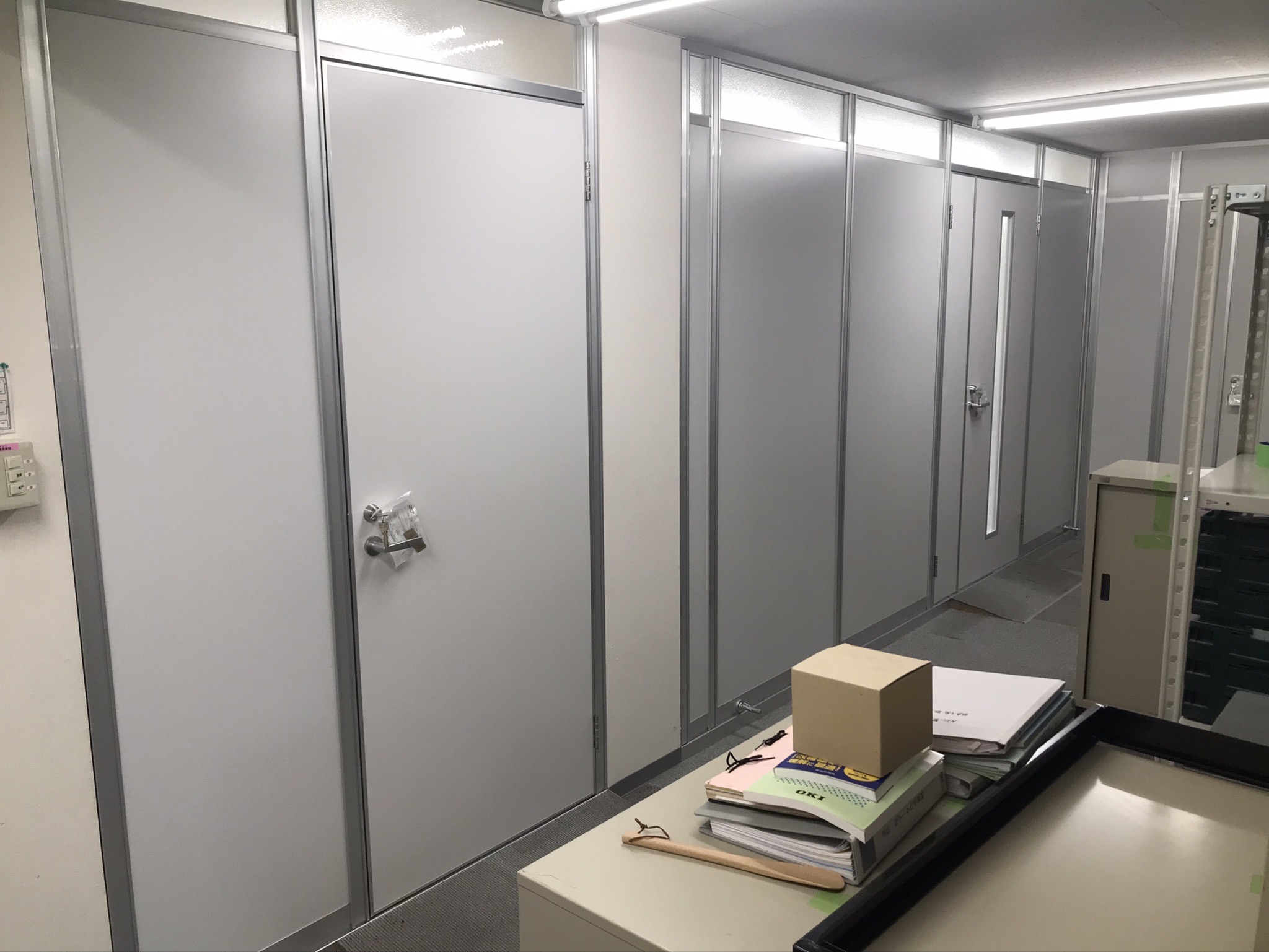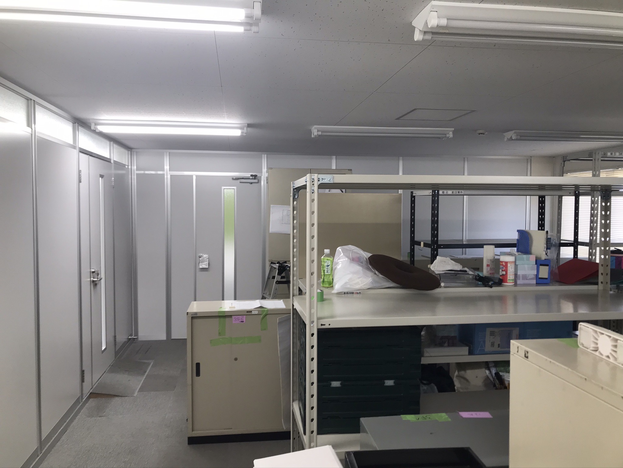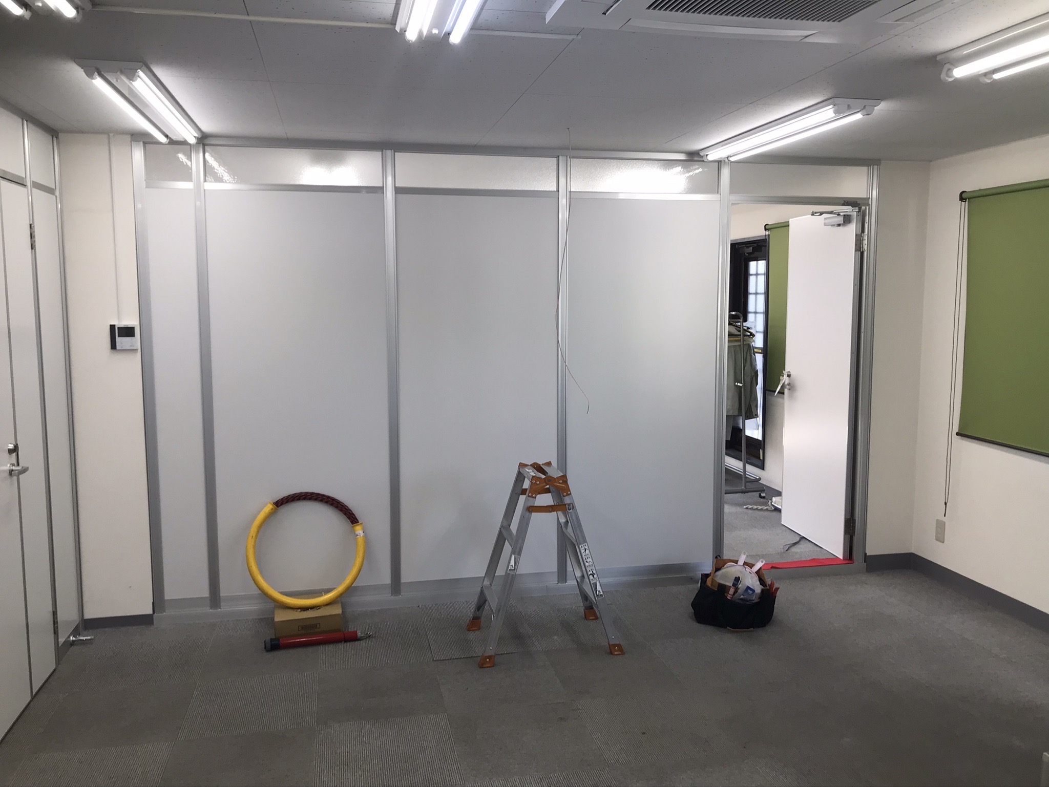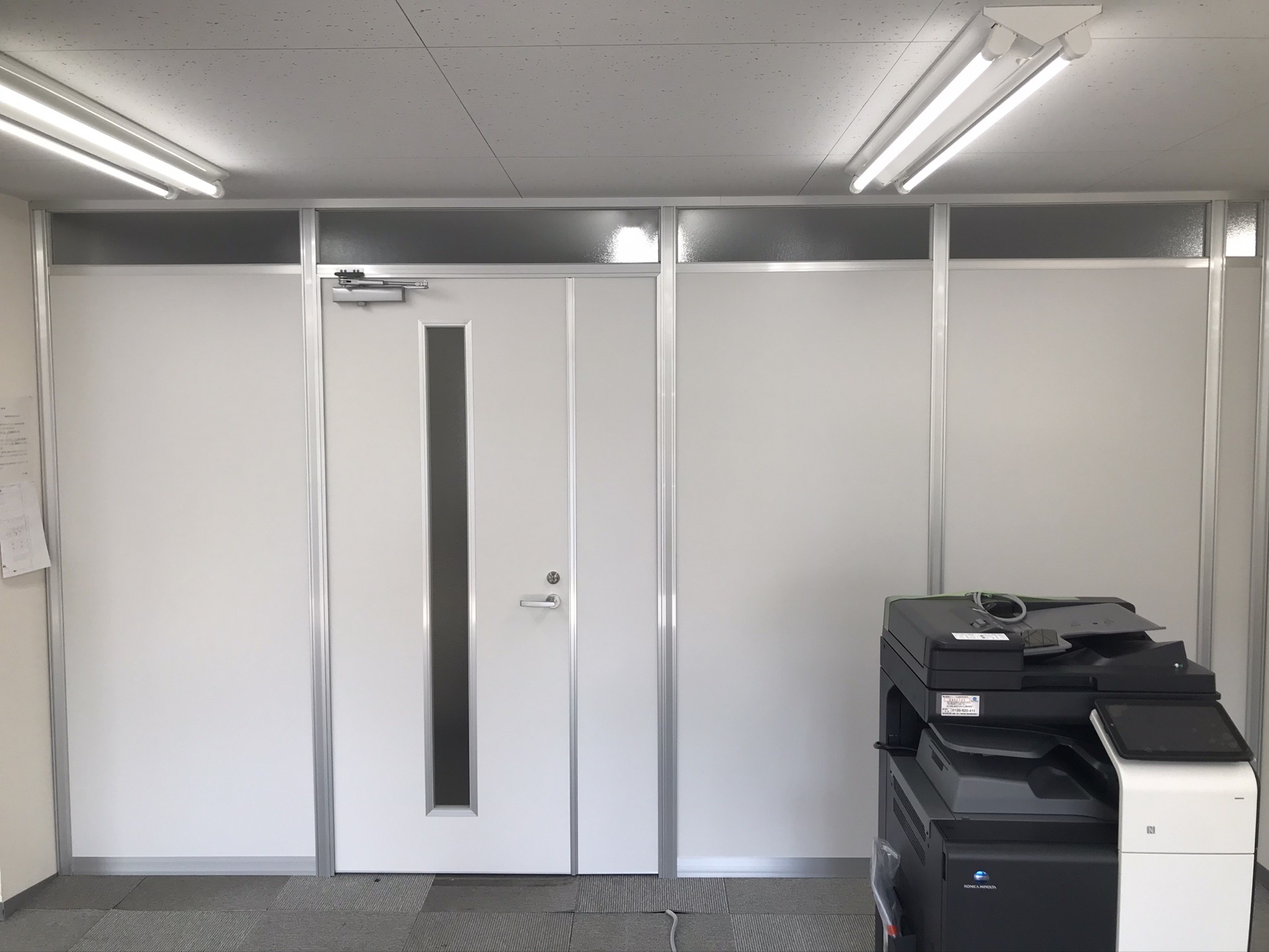 新品アルミパーテーションでランマガラスで遮光をとり、部屋をしっかり分けれる提案