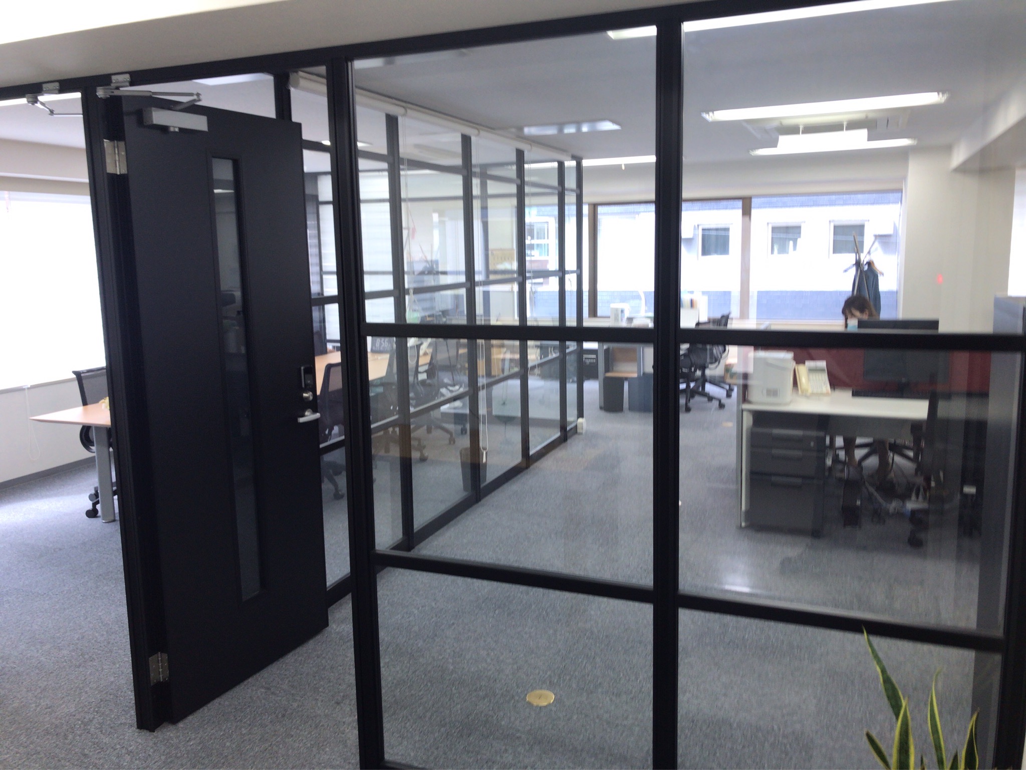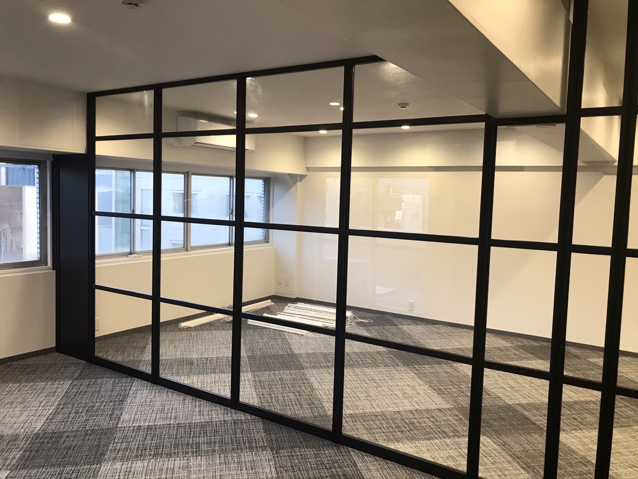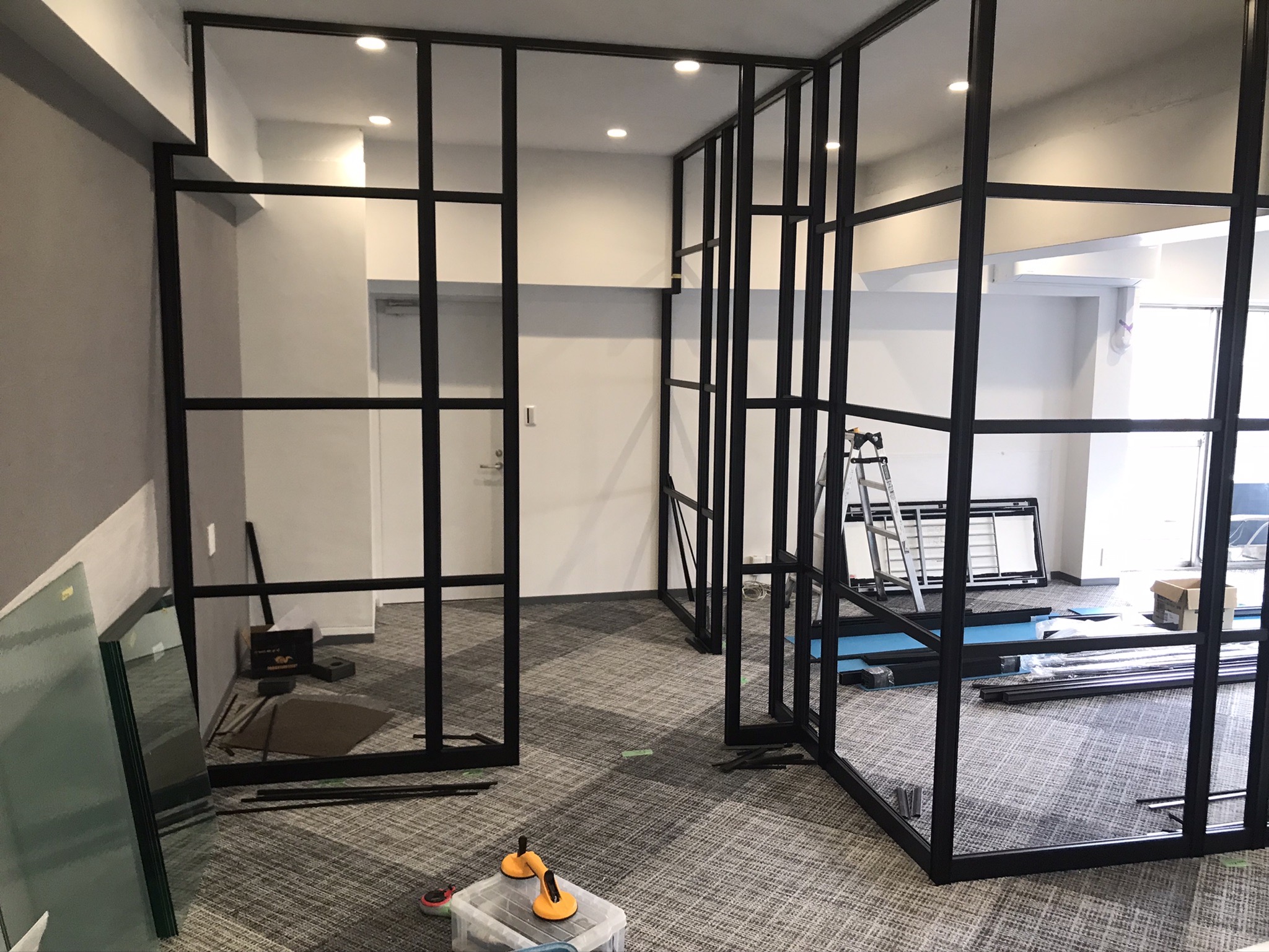 既設パーテーションを全て利用しました!柱の届かない場所のみ新規で部材を入れました、またガラスも再利用が大きかったと思います、お客様の希望を多く取り入れてご提案しました。非常に喜んで頂けて良かったです、今後のアフターフォローもパーテーション職人にお任せください。