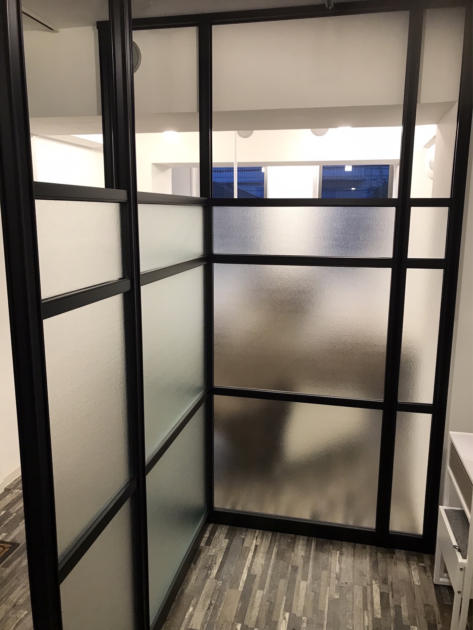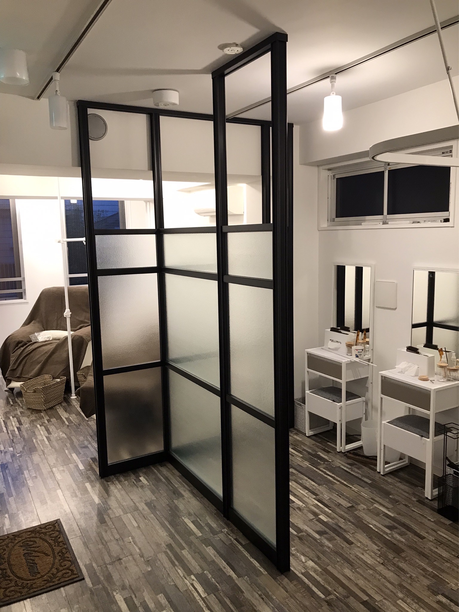 サロン内の通路にパーテーションを設置したいとのご依頼、各社見積も取っていて一番安所に決めるとの事、今回は中古アルミパーテーションで価格を抑えてご提案致しました、お客様もご納得頂き大変良かったです。これからもパーテーション職人をお願い致します。