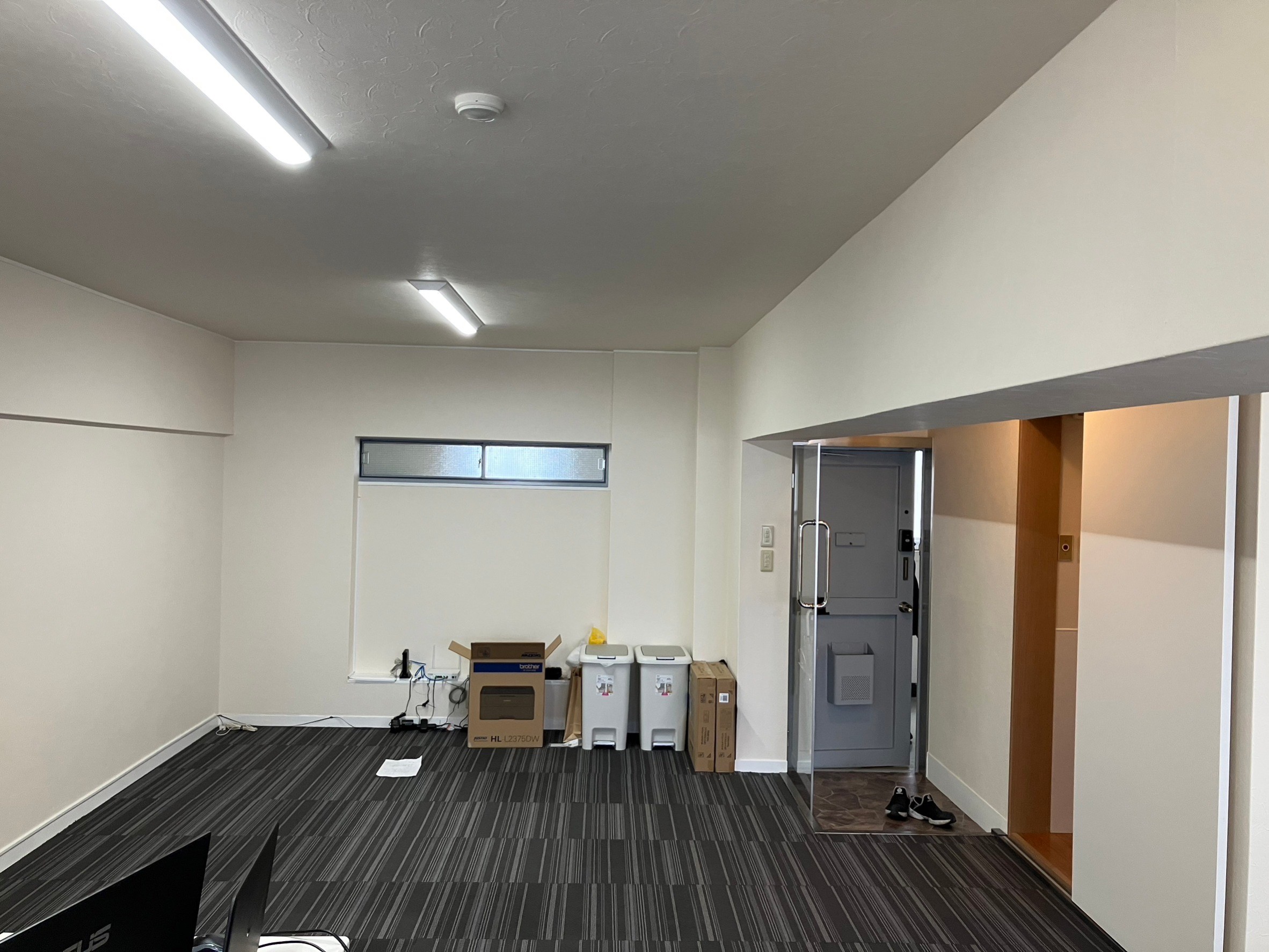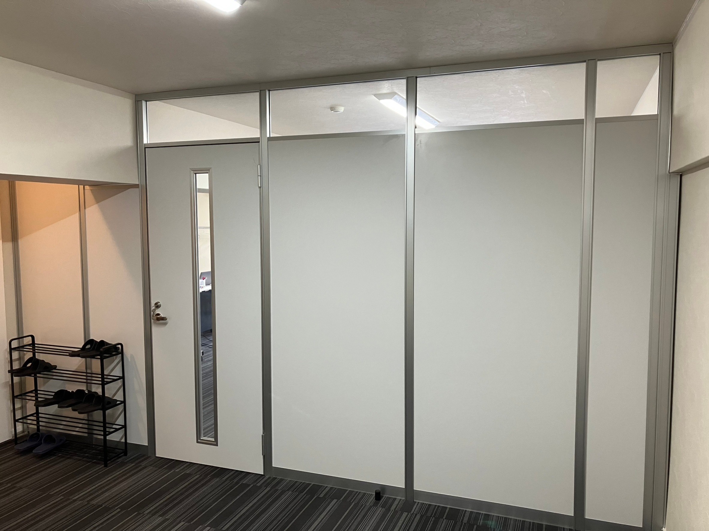 入口から執務室が丸見えなので、間仕切りを建てたい