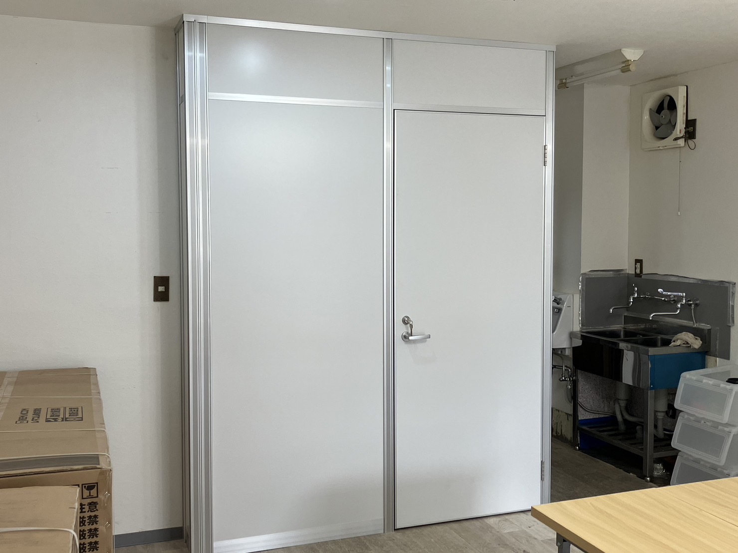 コストをかけずに天井まで塞ぎたいとのことでしたので中古アルミパーテーションを提案致しました。満足して頂けたので良かったです。