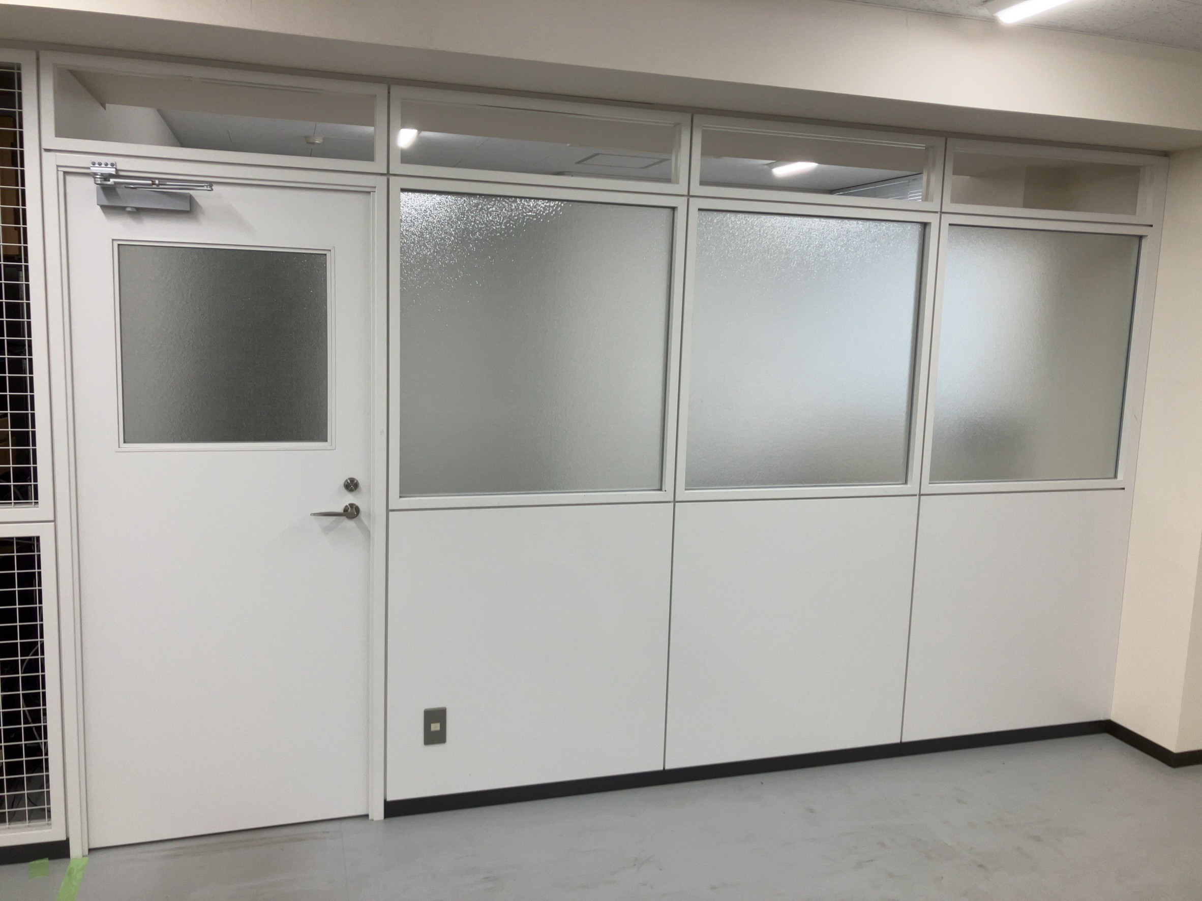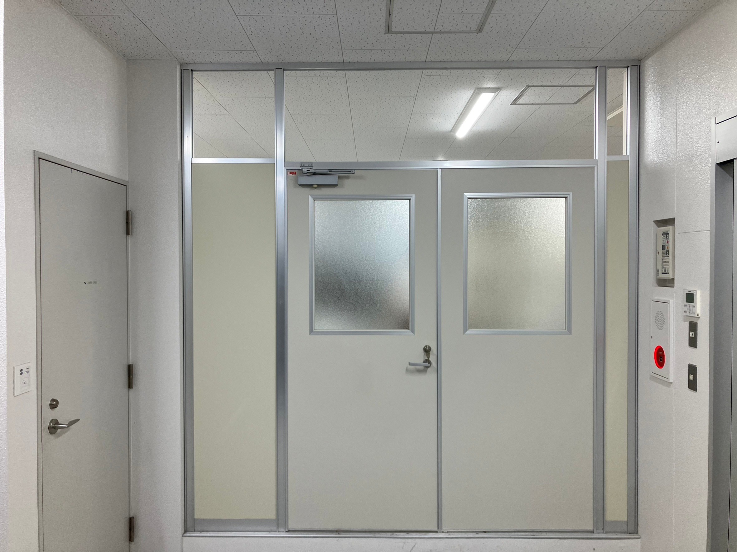 大きな機械の搬入があるため、大きい扉への交換やレイアウト変更をする必要がありましたので以前にもお願いしていたパーテーション職人さんにお声がけしました。中古品でお安く対応していただけてよかったです。またよろしくお願いします