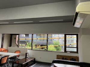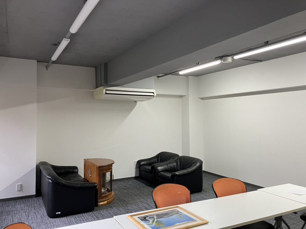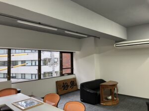 応接室の間仕切り設置と看板の取付をしたいとのことでお問い合わせをいただき、設置方法や空調の問題などを考えたうえでご提案させていただきました。気に入っていただけて良かったです。