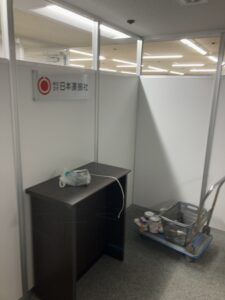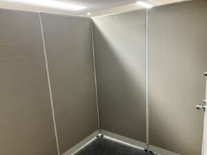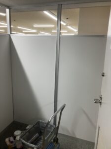 パーテーション職人に決めて頂きありがとうございました。今回のポイントは施工時間でしたね、搬入から搬出までで13:00と決められていました、今回も自社施工でした、その為作戦会議もばっちり行い、さらに無事故で完了する為に役割分担して最短で完了出来ました!また何かありましたら、パーテーション職人にお願い致します。