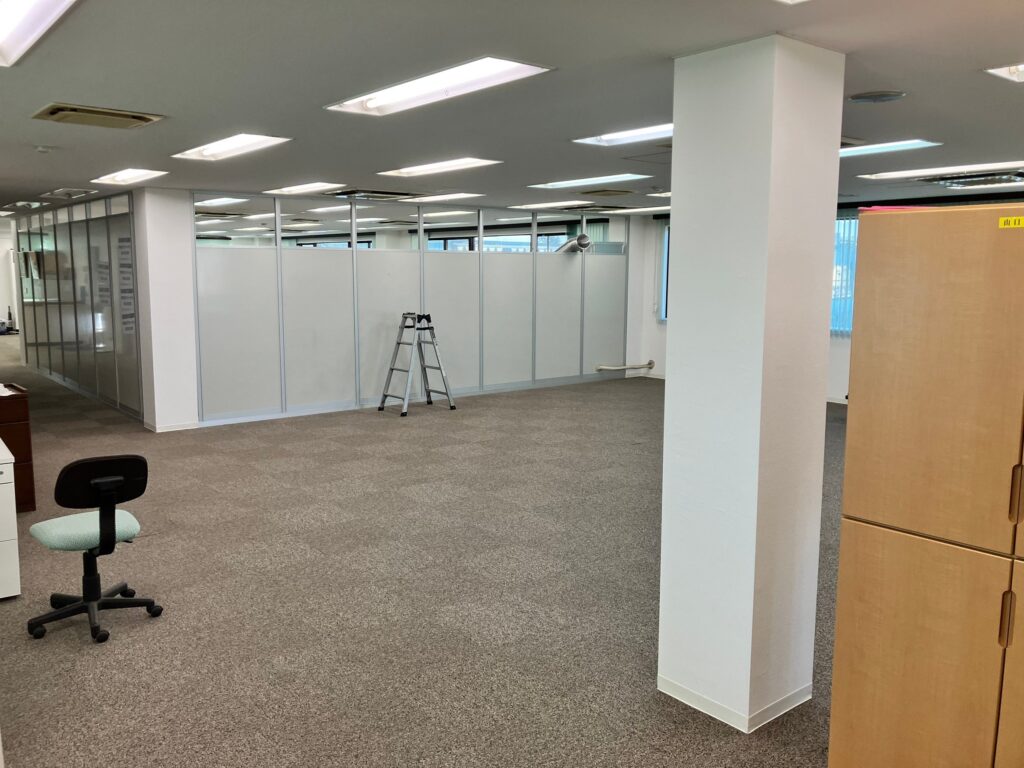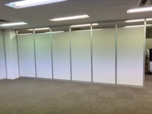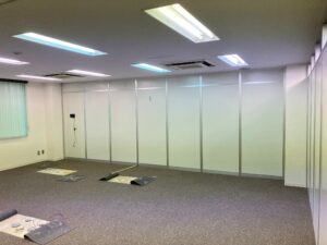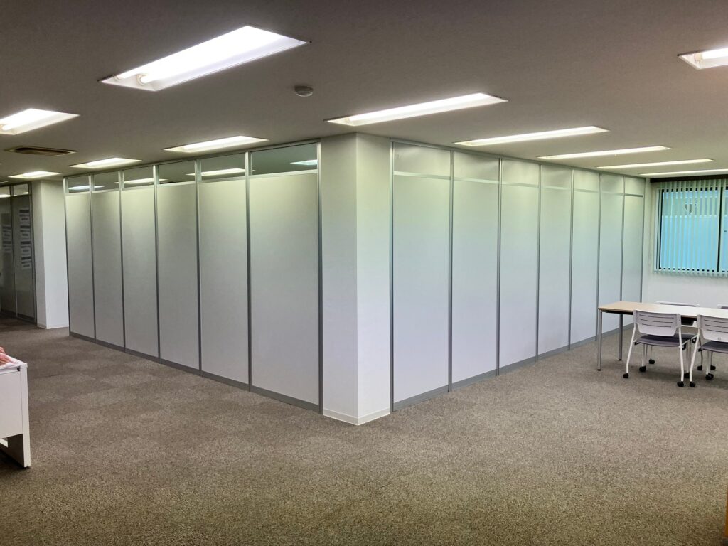 前回建てたパーテーションと同じ部屋内に建てる工事だったため、調査時に設置位置や仕様など前回のものとの兼ね合いも含めて詳細までしっかり打合せをさせていただきました。