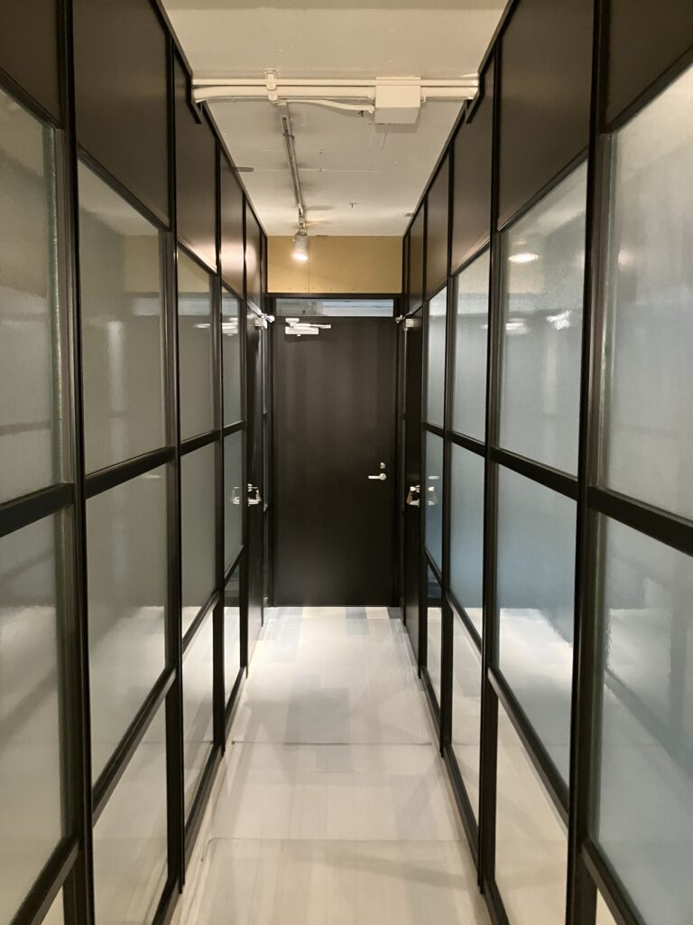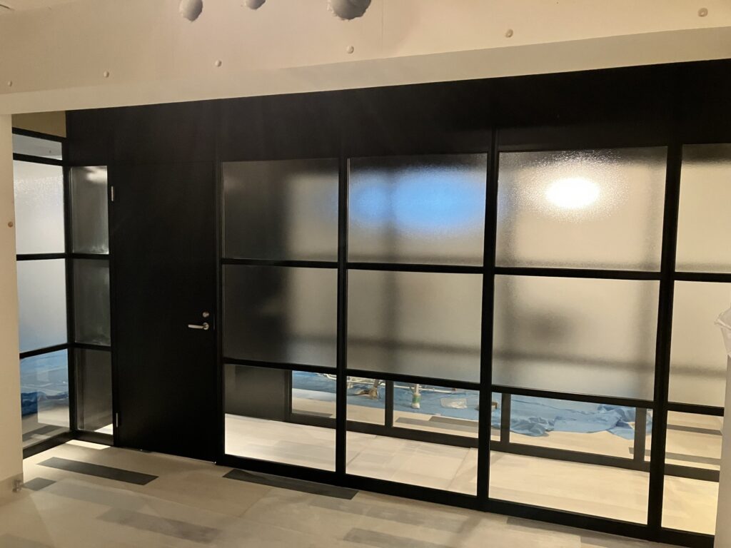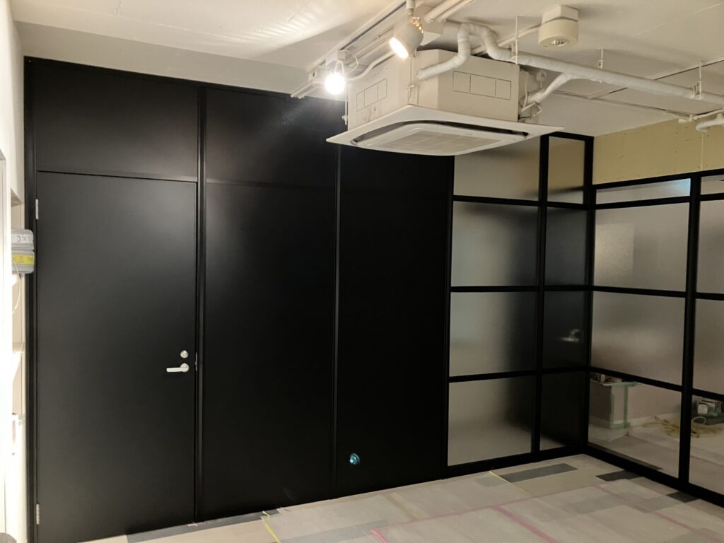 毎度ありがとうございます。内装工事でパーテーション工事がある時はお願いして頂き助かります、ポイントは天井がスラブにパーテーションを設置する場合、いろいろな障害物がある為難しいですが、しっかりと現場調査した事で無事に工事が出来ました、ありがとうございました。