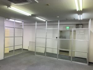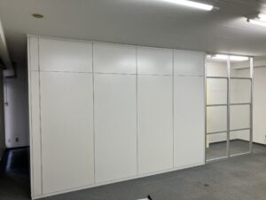 今回はオフィス移転との事で、以前弊社が設置したパーテーションの解体買取工事でした、ポイントは搬出時の距離が長いので一般の居住者や訪問者などの危険が潜んでいましたが、しっかりした養生と2名で搬出する事で声かけもし、無事に完了出来ました、ありがとうございました。また何かあればパーテーション職人をお願い致します。