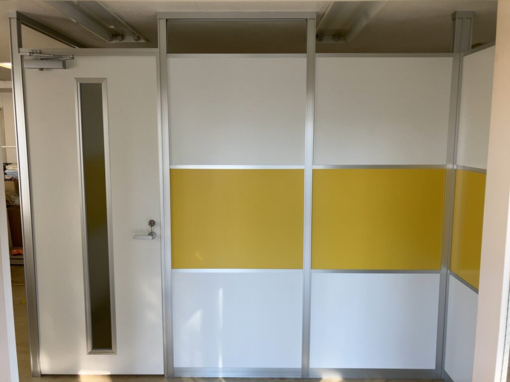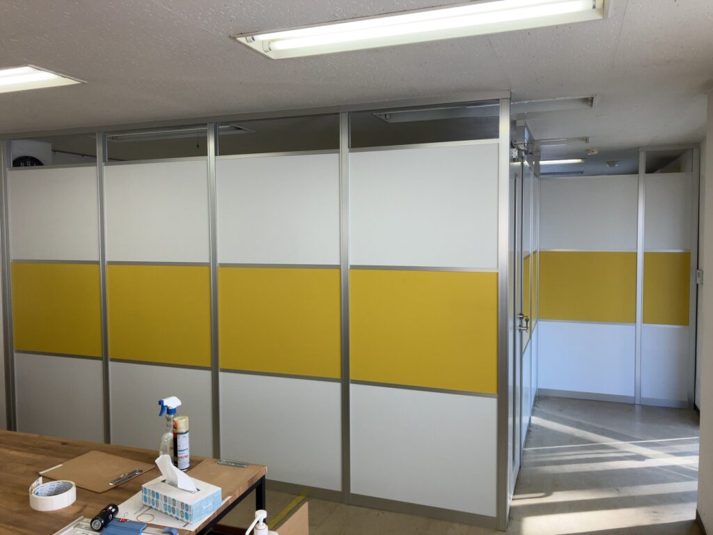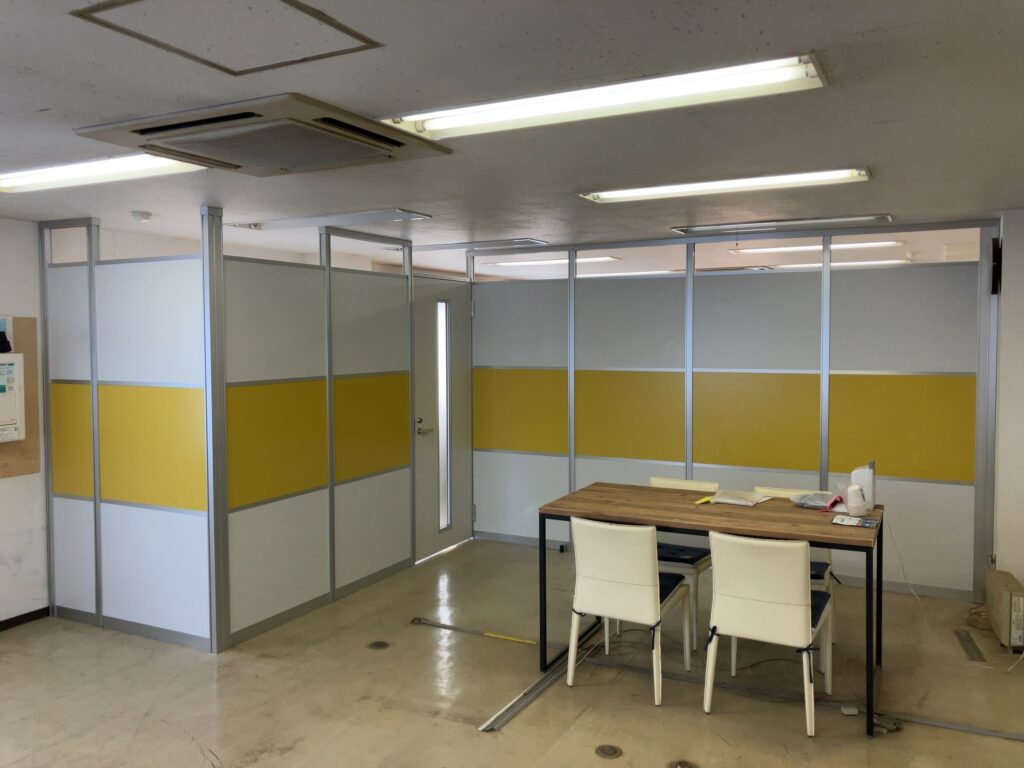 中古アルミパーテーション工事エントランスと会議室を作りたい
