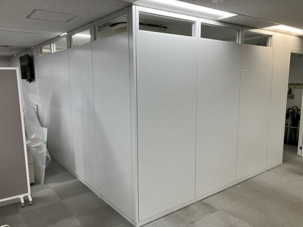 既存のパーテーションを流用したうえで、不足品も中古品などでお安くしていただけて非常に良かったです。また、付随の床工事やクロス工事などもカタログを持ってきていただき打ち合わせにも何度も来ていただけて良かったです。文句なしの100点です。ありがとうございました。