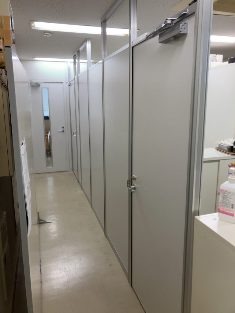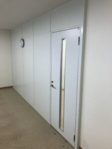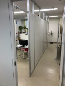 今回は会議室を大きくしたいとの事、ポイントは、会議室の拡大と通路を作る事で、教室と会議室を分けて、使用しやすい環境ができたと思います。