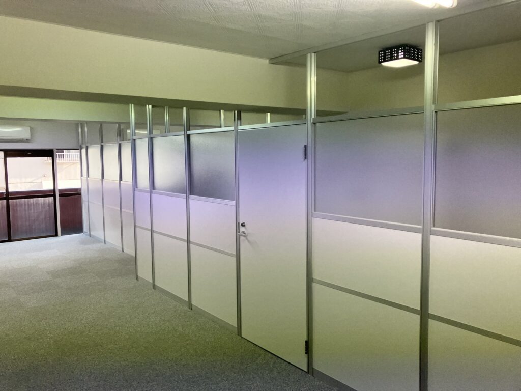 新規事務所へのパーテーション設置とのことだったので、お客様要望に合わせたベストな位置での設置提案をさせていただきました。ご満足いただけて良かったです。