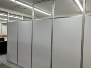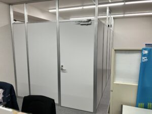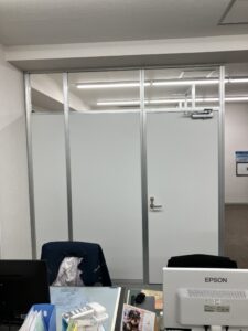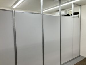 会議室の実際の使用感や、空調・照明の干渉など踏まえてベストな位置でのパーテーション提案をさせていただきました。工事日に関しては申し訳ございませんでした。今後はより早い対応ができる方法を必ず職人と相談して進めさせていただきます。