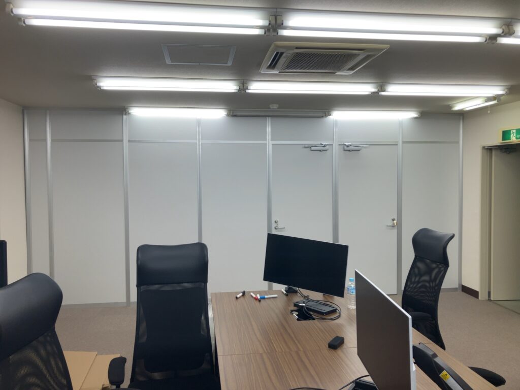 上まで密閉で仕切りたいとのことだったので現地調査のうえで、照明・空調・点検口・消防設備など確認して測量しました。工事内容によっては、消防設備の増設など追加の工事が発生することがあるので工事金額を複数の場合で分けていくつかご説明させていただきました。具体的にイメージできたとのことだったので良かったです。