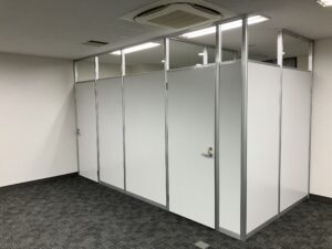 今までと同様に、会議室と執務室の必要寸法から設置位置まで含めてご提案させていただきました。会議室の必要寸法と執務室の最低必要寸法を考えたうえで、一番良いレイアウトを考えてご提案させていただきました。