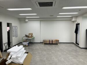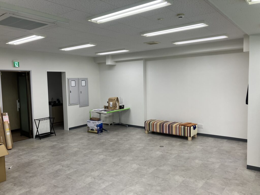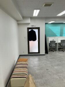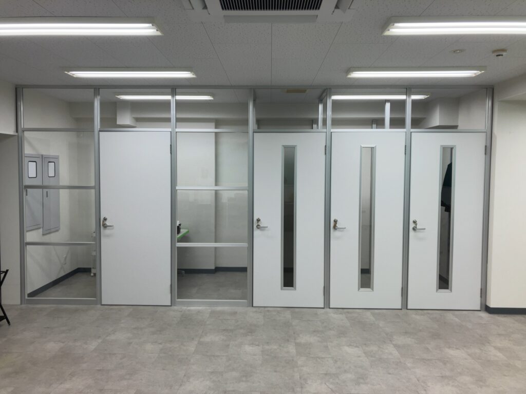 デザイナーさんとエンドユーザー様と仕様の確認で意見交換しガラスを使用した会議室でご提案致しました。レイアウトで3枚ドアが横並びに設置するので、細かいミスが出るとドアの故障につながるので、墨出しから注意して行いました。