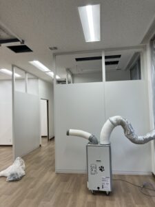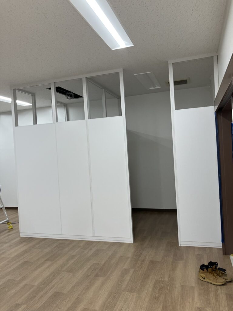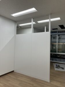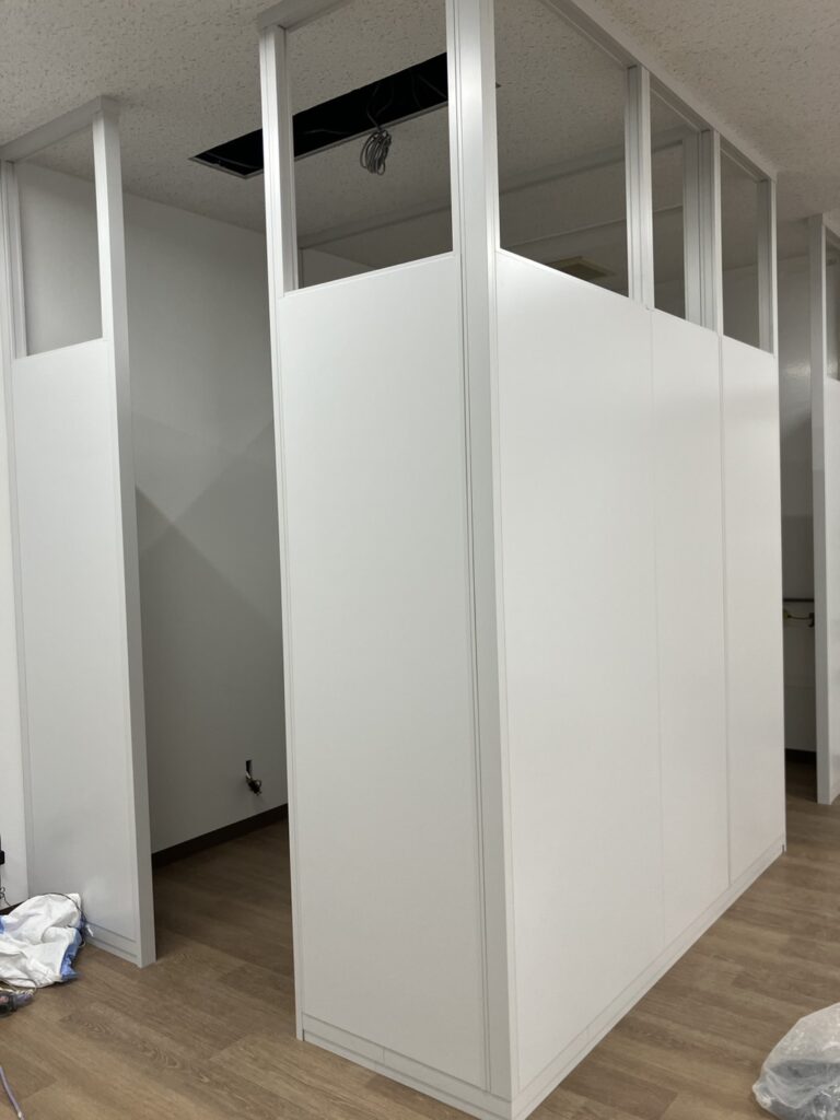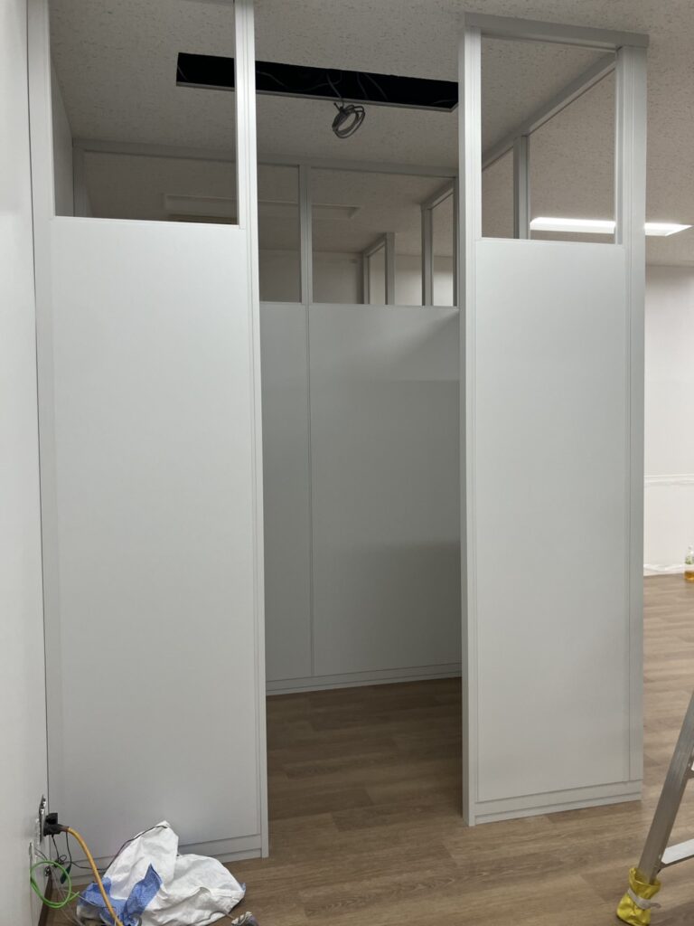 今回はスチールパーテーションですが、ドアが無く開口のままなので、開口サイズ・部屋内のサイズを間違えない様に致しました。