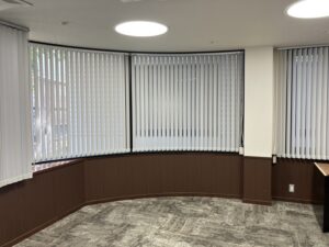 パーテーションの設置個所最後の納めの箇所が湾曲しているところですが、墨出しの時にシッカリ位置を決めることで、問題なく工事ができました。