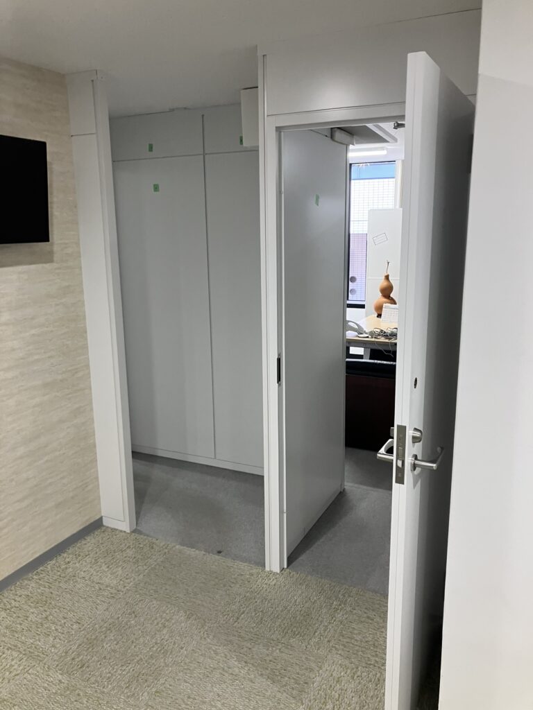 既設の鍵なども流用のうえで、倉庫含めた事務所の仕切りができたので良かったです。