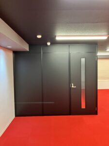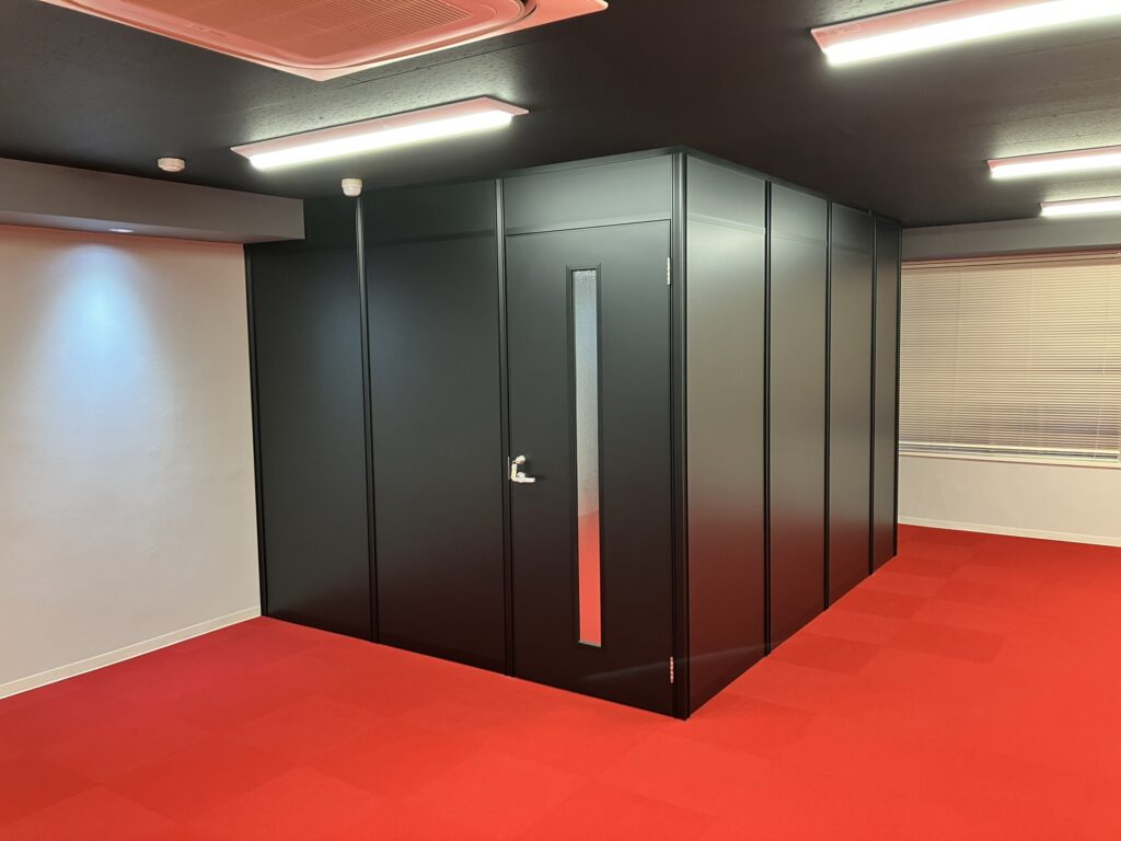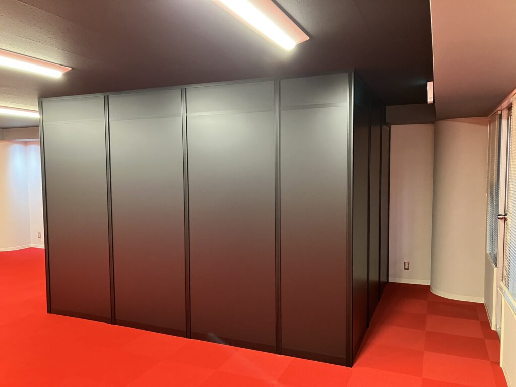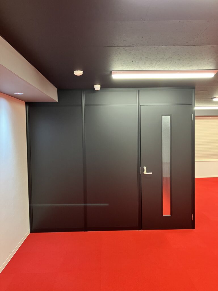 見た目やデザイン性を気にしていましたので、ブラックアルミパーテーションでご提案し、ガラスは少なくした会議室です。