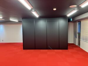 会議室の大きさや設置する場所が重要、会議室の周りには通路があり、通路幅の確保には何度も採寸しやっと決まりました。