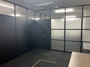 目隠しをする箇所と会議室として見せる箇所を用途に合わせて仕様を調整して、金額を安く部屋も使いやすいようにご提案させていただきました。