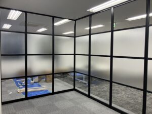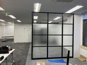 施工は非常にやりやすいオフィスでした、ガラスが多かったので、施工ミスが無いように気を付けました