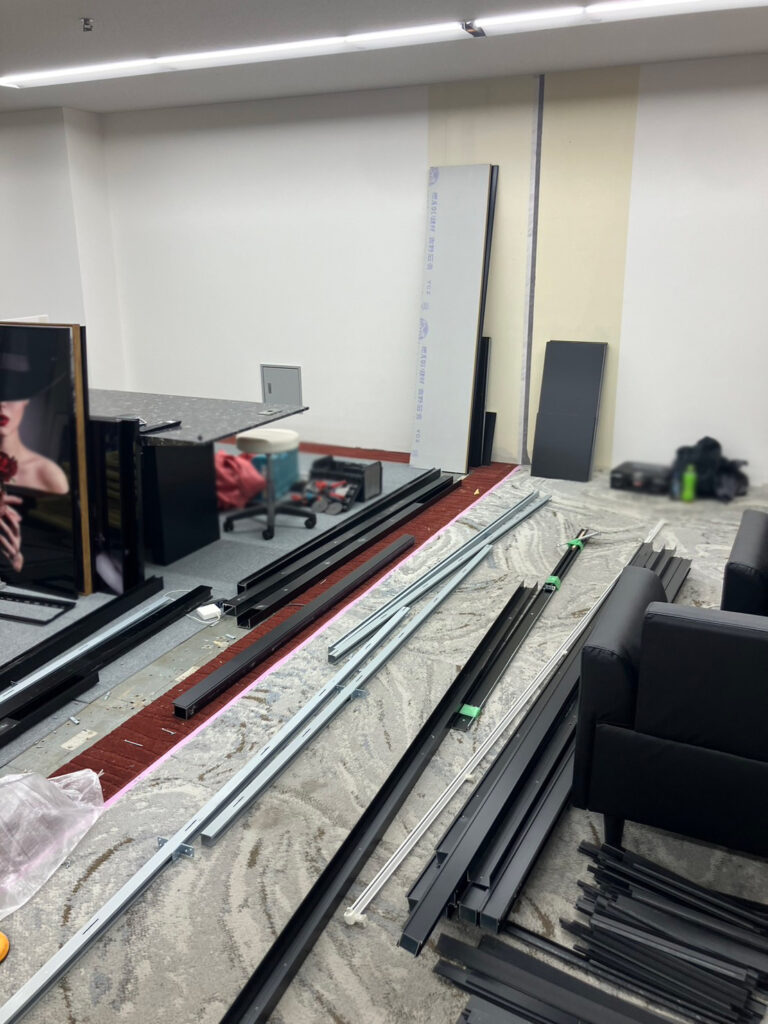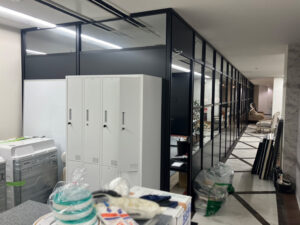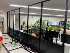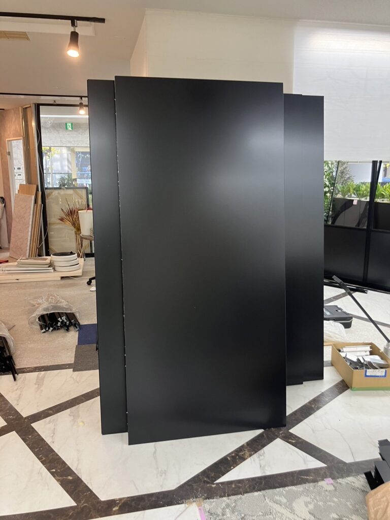 会議室を作りました、デザイン、見た目をカッコよくし、入口から会議室に入るドアの位置をお客様とシッカリ決めました