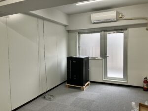 サーバー室を設置しました、窓の納めとエアコンがあるので、加工は大変ですが、無事に納める事ができました