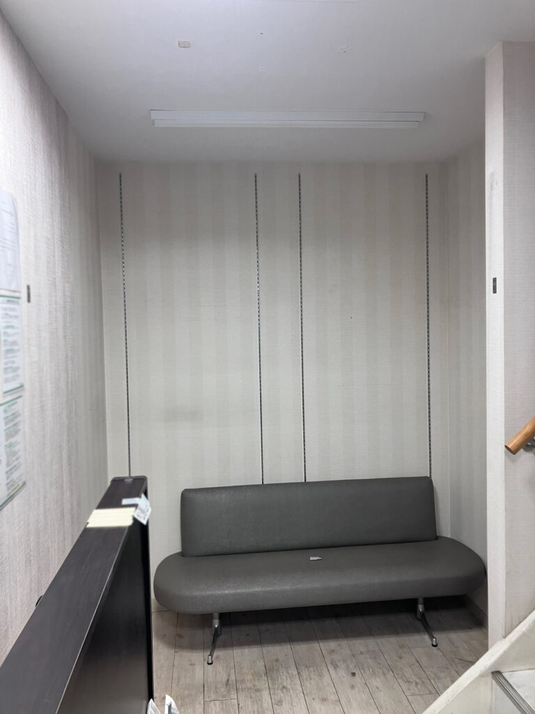 内装工事のホコリや現場がお客様の目に入らない様に、パーテーションで目隠し、中古アルミパーテーションでご提案しました