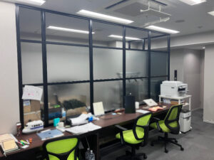 オフィス内装変更に伴う、パーテーション撤去廃棄処分、直営施工で最短工事日のご提案を致しました