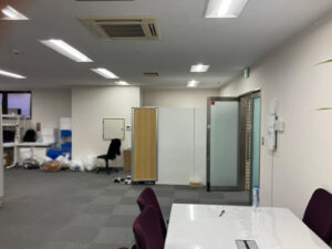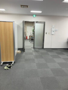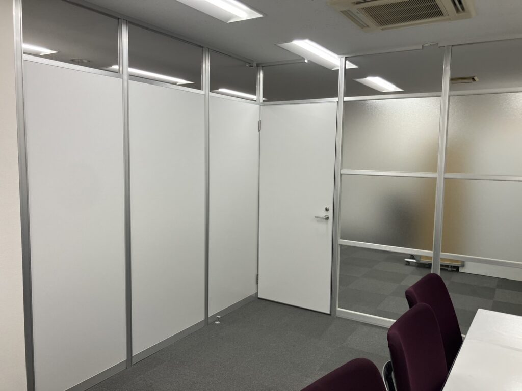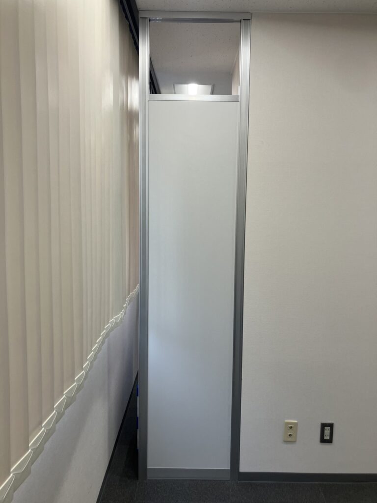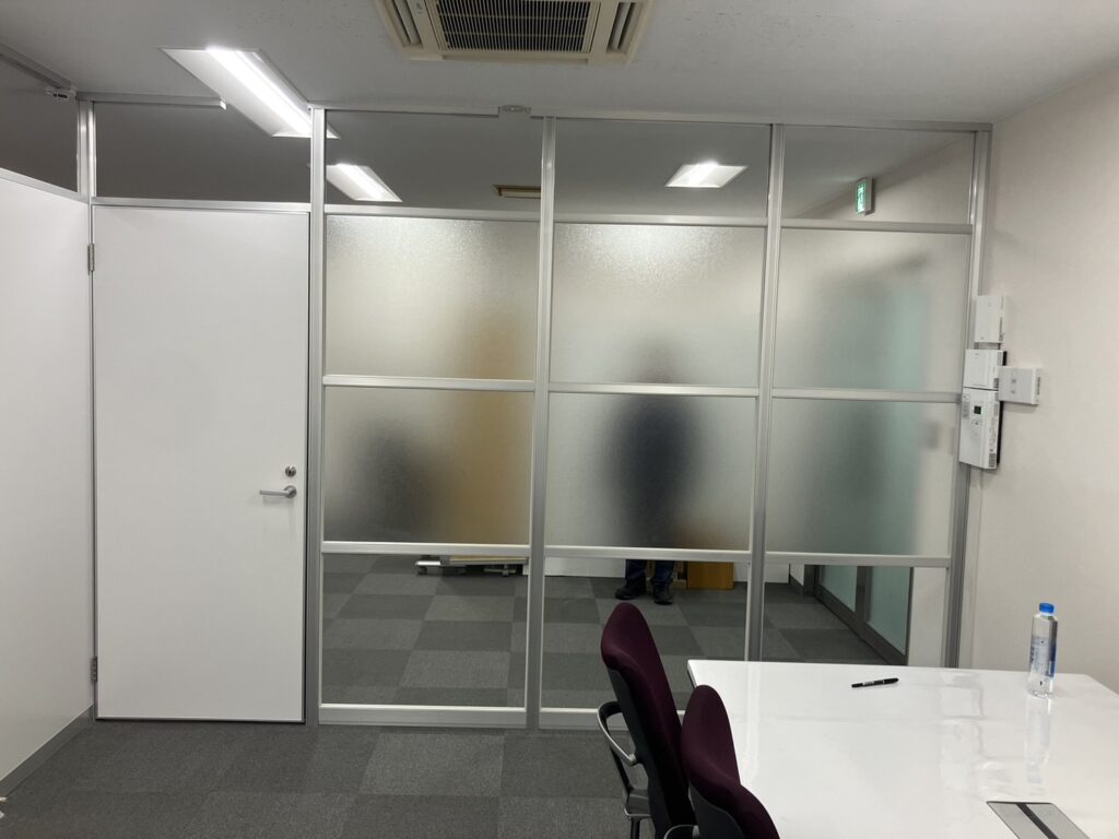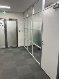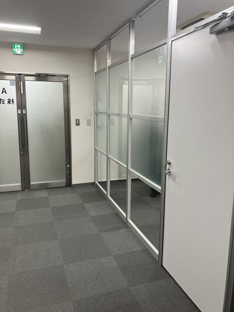 ドア横の3段ブロックガラスを均等割りできれいに見せました。