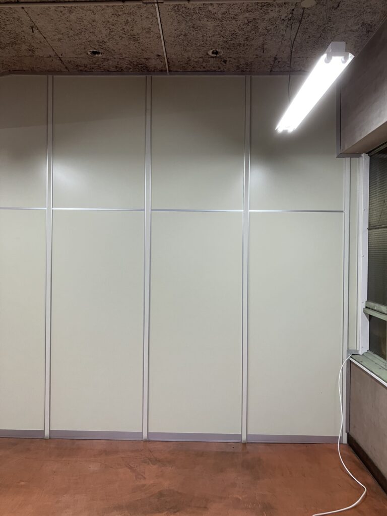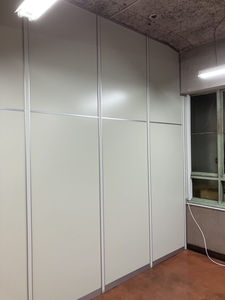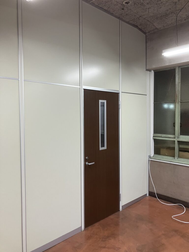 既存パーテーション1枚だけを抜いてドアに変更、メーカーや仕様が違うが干渉しない材料を選択しました