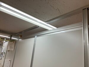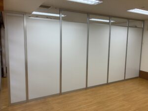 お客様のご要望で、予算内で何とか設置したいと、相談を受けました、ここで諦める訳にはいかない、中古アルミパーテーションでご提案し工事日も空きが比較的多い平日で特価ご提案させていただきました。
