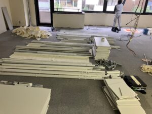 お客様のご希望レイアウトだと、今のパーテーションだと足らないので、中古スチールパーテーションを追加し、予算の削減に成功、また工事日も直営施工なので、ご希望通りに施工出来ました、喜んでいただき、ありがとうございました。